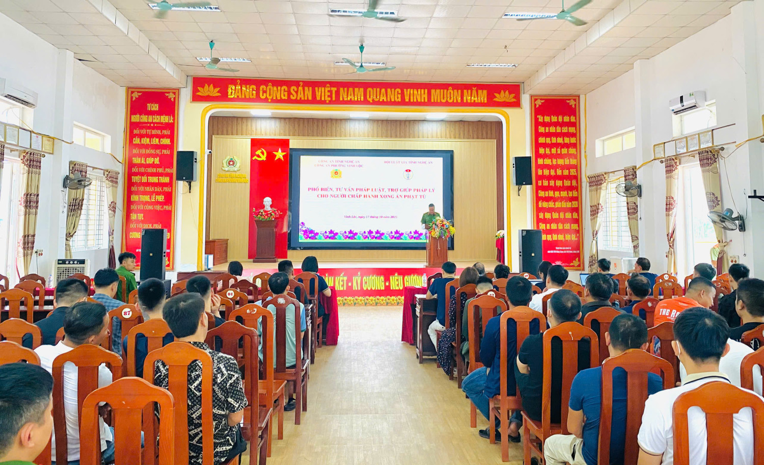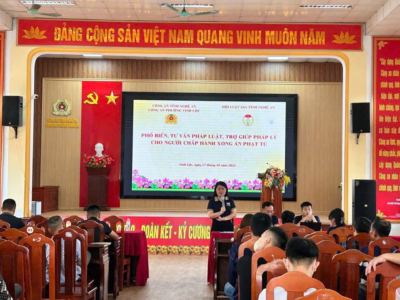 Tham dự Hội nghị có ông Hoàng Quốc Hào- Chủ tịch Hội Luật gia tỉnh Nghệ An, bà Trần Thị Khánh Hương- Giám đốc Trung tâm TVPL HLG tỉnh cùng các Tư vấn viên của đơn vị. Về công an phường Vinh Lộc có Đại úy Nguyễn Trung Kiên- phó trưởng công an phường và đại diện UBND phường Vinh Lộc